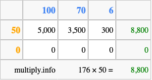 Below is an illustration showing you how to calculate 176 times 50 using the box method, using the instructions above.