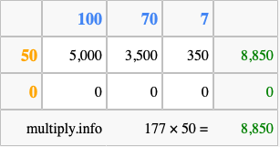 Below is an illustration showing you how to calculate 177 times 50 using the box method, using the instructions above.