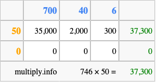 Below is an illustration showing you how to calculate 746 times 50 using the box method, using the instructions above.