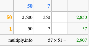 Finally, we add up all the sums we found in step 3 to get our final answer to 57 times 51.