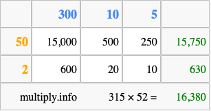 Finally, we add up all the sums we found in step 3 to get our final answer to 315 times 52.