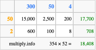 Finally, we add up all the sums we found in step 3 to get our final answer to 354 times 52.