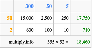 Finally, we add up all the sums we found in step 3 to get our final answer to 355 times 52.
