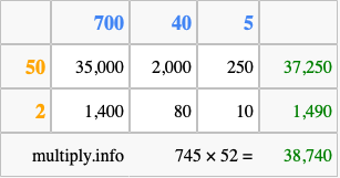 Finally, we add up all the sums we found in step 3 to get our final answer to 745 times 52.