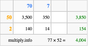 Finally, we add up all the sums we found in step 3 to get our final answer to 77 times 52.