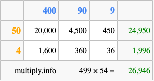 Finally, we add up all the sums we found in step 3 to get our final answer to 499 times 54.