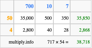 Finally, we add up all the sums we found in step 3 to get our final answer to 717 times 54.