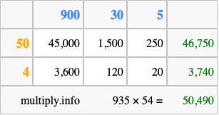 Finally, we add up all the sums we found in step 3 to get our final answer to 935 times 54.