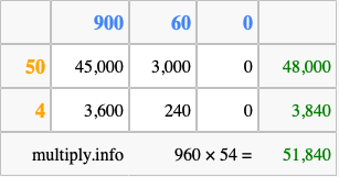 Finally, we add up all the sums we found in step 3 to get our final answer to 960 times 54.