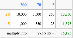 Finally, we add up all the sums we found in step 3 to get our final answer to 275 times 55.