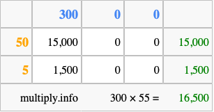 Finally, we add up all the sums we found in step 3 to get our final answer to 300 times 55.