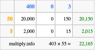 Finally, we add up all the sums we found in step 3 to get our final answer to 403 times 55.
