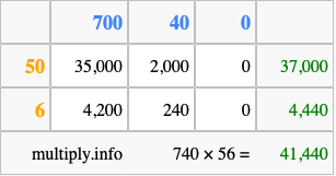 Finally, we add up all the sums we found in step 3 to get our final answer to 740 times 56.