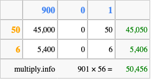 Finally, we add up all the sums we found in step 3 to get our final answer to 901 times 56.