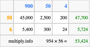 Finally, we add up all the sums we found in step 3 to get our final answer to 954 times 56.
