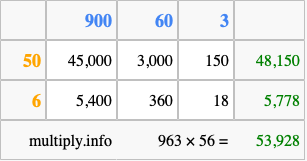 Finally, we add up all the sums we found in step 3 to get our final answer to 963 times 56.