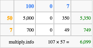 Finally, we add up all the sums we found in step 3 to get our final answer to 107 times 57.