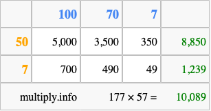 Below is an illustration showing you how to calculate 177 times 57 using the box method, using the instructions above.