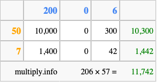 That's all there is to it! As you can see from the box above, the answer to 206 times 57 using the box method is 11,742.