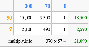 Finally, we add up all the sums we found in step 3 to get our final answer to 370 times 57.