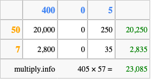 Finally, we add up all the sums we found in step 3 to get our final answer to 405 times 57.