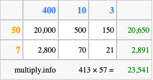 Finally, we add up all the sums we found in step 3 to get our final answer to 413 times 57.