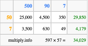 That's all there is to it! As you can see from the box above, the answer to 597 times 57 using the box method is 34,029.