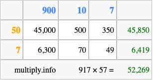 That's all there is to it! As you can see from the box above, the answer to 917 times 57 using the box method is 52,269.