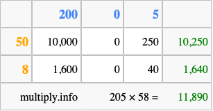 Finally, we add up all the sums we found in step 3 to get our final answer to 205 times 58.