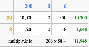 Finally, we add up all the sums we found in step 3 to get our final answer to 206 times 58.