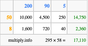 Finally, we add up all the sums we found in step 3 to get our final answer to 295 times 58.
