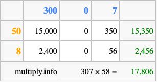 Finally, we add up all the sums we found in step 3 to get our final answer to 307 times 58.