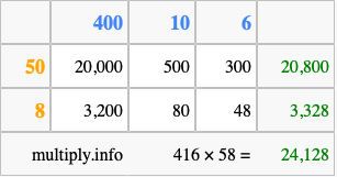 Finally, we add up all the sums we found in step 3 to get our final answer to 416 times 58.