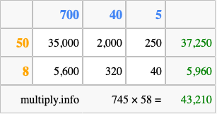 Finally, we add up all the sums we found in step 3 to get our final answer to 745 times 58.