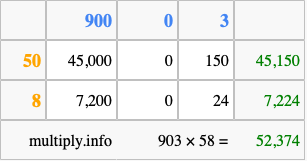 Finally, we add up all the sums we found in step 3 to get our final answer to 903 times 58.
