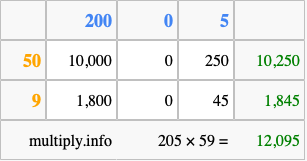 Finally, we add up all the sums we found in step 3 to get our final answer to 205 times 59.