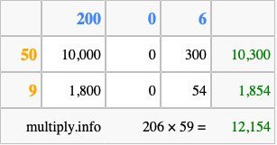That's all there is to it! As you can see from the box above, the answer to 206 times 59 using the box method is 12,154.