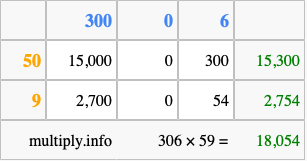 Below is an illustration showing you how to calculate 306 times 59 using the box method, using the instructions above.