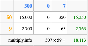 Below is an illustration showing you how to calculate 307 times 59 using the box method, using the instructions above.