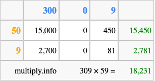 Finally, we add up all the sums we found in step 3 to get our final answer to 309 times 59.