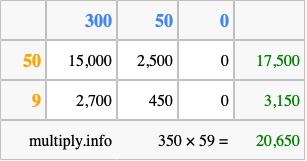Finally, we add up all the sums we found in step 3 to get our final answer to 350 times 59.
