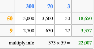 Below is an illustration showing you how to calculate 373 times 59 using the box method, using the instructions above.