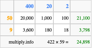 Finally, we add up all the sums we found in step 3 to get our final answer to 422 times 59.