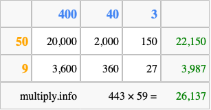 Finally, we add up all the sums we found in step 3 to get our final answer to 443 times 59.