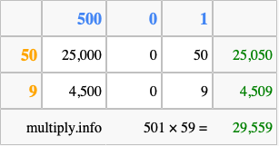 Finally, we add up all the sums we found in step 3 to get our final answer to 501 times 59.