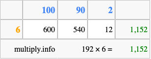 That's all there is to it! As you can see from the box above, the answer to 192 times 6 using the box method is 1,152.