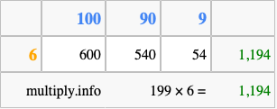 Below is an illustration showing you how to calculate 199 times 6 using the box method, using the instructions above.