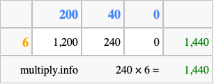That's all there is to it! As you can see from the box above, the answer to 240 times 6 using the box method is 1,440.