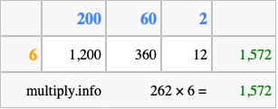 That's all there is to it! As you can see from the box above, the answer to 262 times 6 using the box method is 1,572.