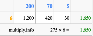 Below is an illustration showing you how to calculate 275 times 6 using the box method, using the instructions above.